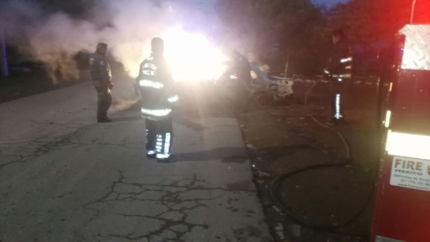 La policía municipal de Teotihuacán recibió el reporte a las 6:30 de la mañana de que un vehículo tipo Tsuru que cubre la ruta Teotihuacán-Maquixco se estaba quemando y al parecer con personas en su interior.