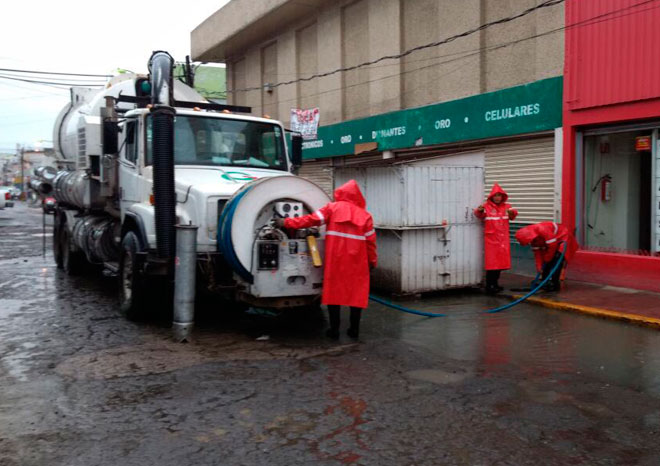 Al respecto, José Manuel Camacho, vocal ejecutivo de la CAEM, mencionó que se desplegaron camiones de presión-succión tipo váctor, retroexcavadoras y camiones de volteo, para despejar las alcantarillas que se vieron obstruidas por el hielo y la basura que fue arrastrada por las lluvias, sobre todo en la zona de la Vía López Portillo. Además, la CAEM y el Grupo Tláloc atendieron encharcamientos de hasta 30 centímetros en la zona de la Vía Morelos en Ecatepec, donde se desplegaron equipos tipo váctor para atender la contingencia y mejorar las condiciones del tránsito a la altura de la colonia San Pedro Xalostoc.