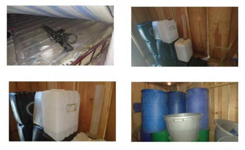 En el laboratorio clandestino fueron localizados 23 kilos 220 gramos de heroína producida, 9 kilos 648 gramos de goma de opio, 473 litros de hidróxido de amonio, 105 litros de goma de opio en proceso, 9.15 litros de ácido clorhídrico, 1 kilo 600 gramos de polvo blanco sin identificar.