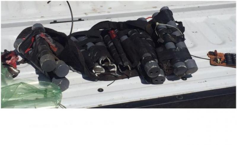 Los once cilindros, color negro, conectados entre sí con cables, sujetos a un chaleco que simularon ser una bomba, descubiertos en un jardín del exclusivo fraccionamiento el Cid, en Mazatlán, resultaron ser tubos de PVC pintados.