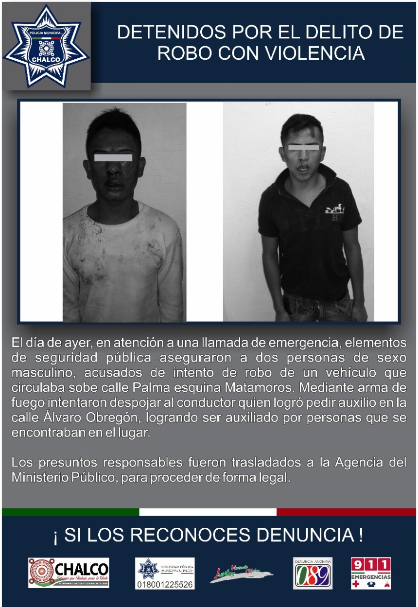 Los dos sujetos que fueron golpeados ayer por vecinos en la calle Álvaro Obregón, en la zona centro de Chalco, fueron identificados como Ezequiel y José David, de 23 y 21 años de edad, respectivamente.