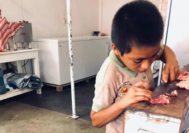 El día que llego a la carnicería le di comida y comió muy rápido, le pregunté que si había comido algo, a lo que me contestó “si ayer, unas tortillas”. Créanme, me sentí muy mal y decidí que iba a apoyarlo y tratar de enseñarle este humilde oficio, porque se que primero Dios le servirá.