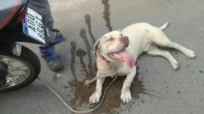 Un hombre amarró a un pitbull a su motocicleta y luego lo arrastró por las calles del barrio de Quilmes en Buenos Aires, hasta que un joven automovilista lo detuvo y junto con varios vecinos rescataron al animal, que tenía las patas quemadas por la fricción con el asfalto, informó el portal argentino Todo Noticias.