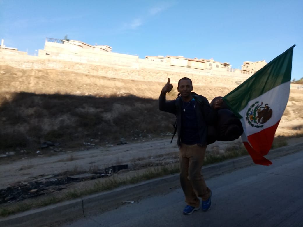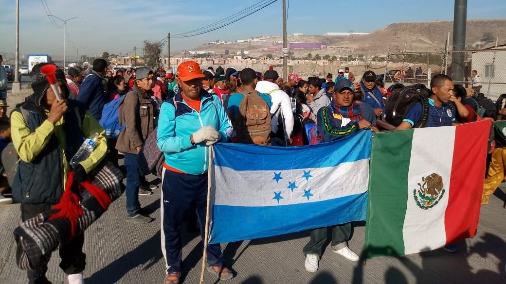 Sostuvieron la bandera de México como agradecimiento por la ayuda que han recibido en su trayecto para poder llegar a la ciudad fronteriza.