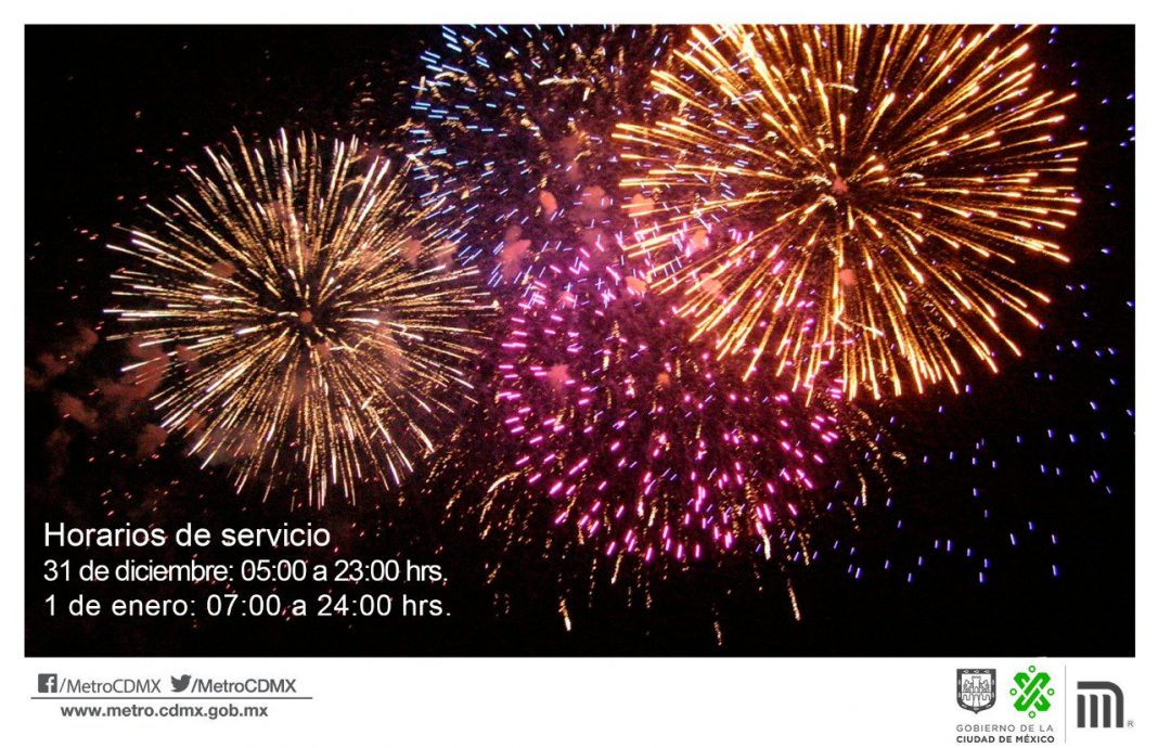Con motivo de fin de año, el Sistema de Transporte Colectivo Metro, anunció que el lunes 31 de diciembre operará con un horario de 5 de la mañana a 11 de la noche.