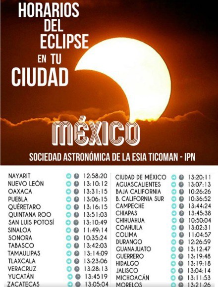 Por su parte, en Colima, Michoacán, Guerrero y Oaxaca, el eclipse alcanzará a verse apenas un 25 por ciento, mientras que en Baja California, Sonora, Chihuahua y Nuevo León será visible un 70 por ciento, siendo las 10:30 de la mañana el punto máximo de oscuridad.