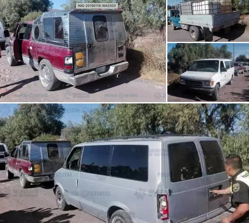 En el marco del operativo para inhibir la extracción y comercialización ilegal de hidrocarburo, elementos de la Secretaría de Seguridad (SS) hallaron abandonadas cinco camionetas, aparentemente utilizadas para transportar hidrocarburo de dudosa procedencia.