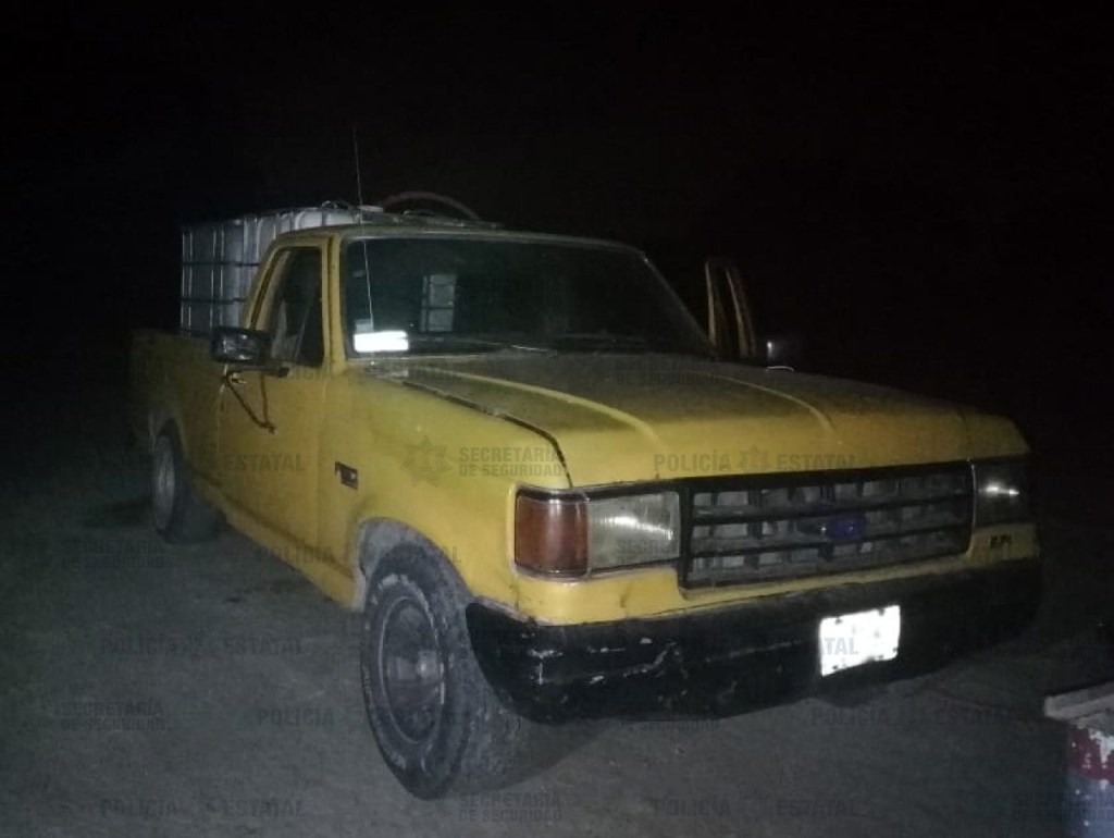 En la primera unidad se localizaron tres bidones, color blanco, de 100 litros cada uno; un bidón, color azul, de 60 litros; dos contenedores con arnés metálico y capacidad de mil litros, cada uno, todos llenos al 80 por ciento de una sustancia con características propias de la gasolina.
