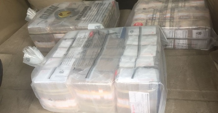 Al verificar el vehículo, los uniformados encontraron los paquetes con el dinero en efectivo en la parte trasera, mismo que estaba distribuido en tres envases sellados con los números de serie A4188678, A4188631 y A4188684.