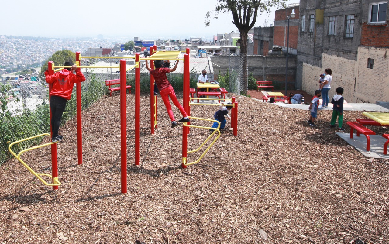De acuerdo con sus testimonios, el terreno, ahora habilitado con juegos y bancas, era un sitio en el que la gente tiraba basura. Por otra parte, las niñas y niños se veían obligados a jugar en la tierra o en las empinadas calles de la comunidad.