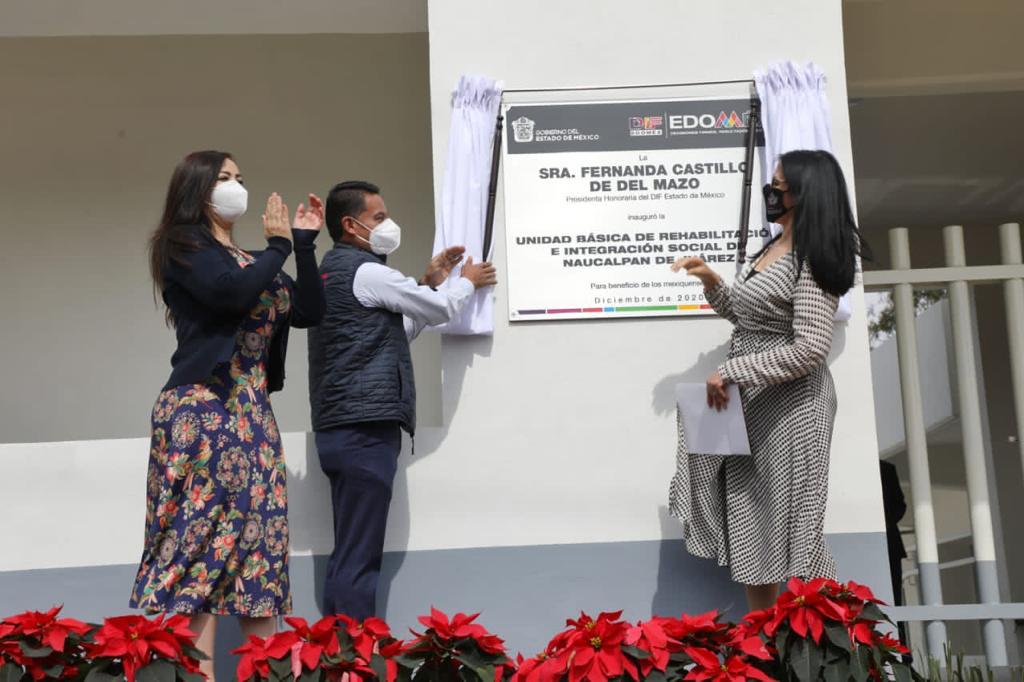 De manera simultánea en múltiples municipios, vía remota, la Presidenta Honoraria del DIFEM, Fernanda Castillo de Del Mazo, inauguró tres unidades de rehabilitación, entre ellas la de Naucalpan, y rehabilitó seis más, con lo cual, el Estado de México se convirtió en la entidad con la red más grande de atención a las discapacidades en el país.