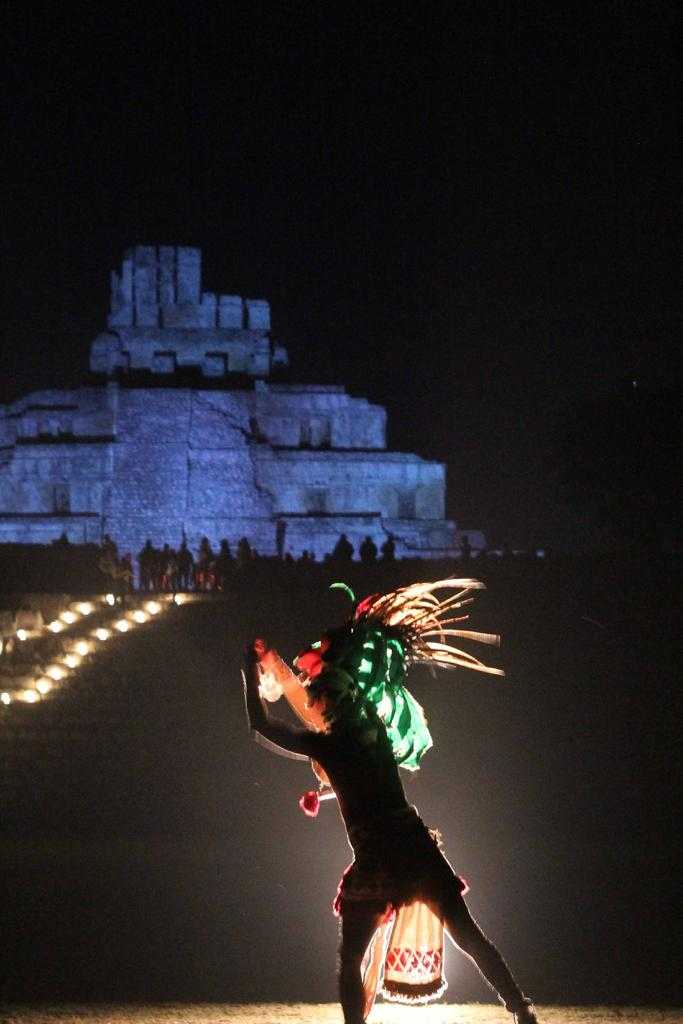 Se trata del espectáculo Experiencia Nocturna titulado “Edzná, espejo de los dioses”, que ofrece al visitante una exhibición multimedia de 20 minutos, en el que a través de imágenes y sonidos se relata la vida cotidiana de los mayas, su relación con la naturaleza y el universo, así como la importancia de los dioses Chaac, dios de la lluvia y protector de la agricultura; e Itzamná, considerado como el dios de la sabiduría, del cielo, la noche y el día, y espíritu universal de vida que anima al caos para que haya creación, con tecnología avanzada en la que se proyectan imágenes de alta calidad.