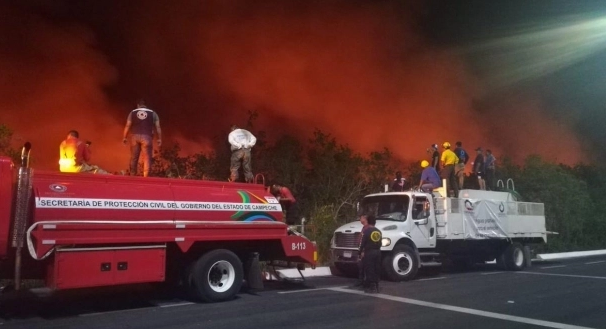 La Dirección de Protección Civil del municipio de Campeche informó la noche de este lunes trabajaba para determinar la magnitud de los daños en coordinación con brigadistas de la Comisión Nacional Forestal (Conafor), el Heroico Cuerpo de Bomberos y la Secretaría de Protección Civil Estatal.