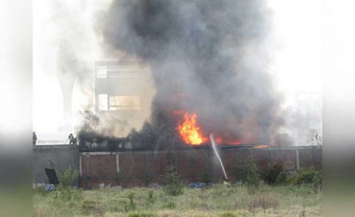 De acuerdo con vecinos, eran cerca de las 6:00 horas cuando observaron que las llamas salían de un inmueble de la empresa de poliuretano ubicada sobre la avenida Industria Automotriz y Alfredo del Mazo, este miércoles.