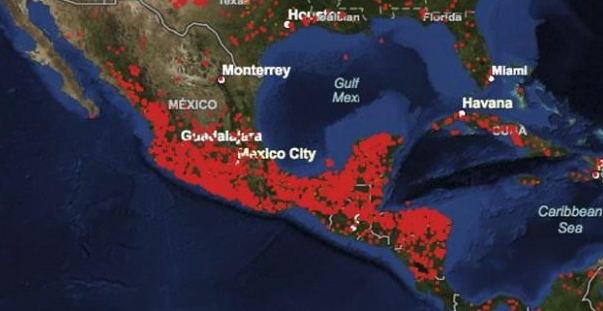 Como podemos apreciar, el sureste de la República Mexicana está repleto de columnas de humo, provenientes de las llamas en tierra. Obviamente, las zonas más afectadas son las forestales, mismas que están siendo consumidas de manera continua por el fuego; el Bosque de la Primavera, en Zapopan, es el claro ejemplo de lo anterior. Aunque no se reporta que las cosas estén fuera de control, las altas temperaturas y el retraso en la temporada de lluvias, han ocasionado que el fenómeno se mantenga.