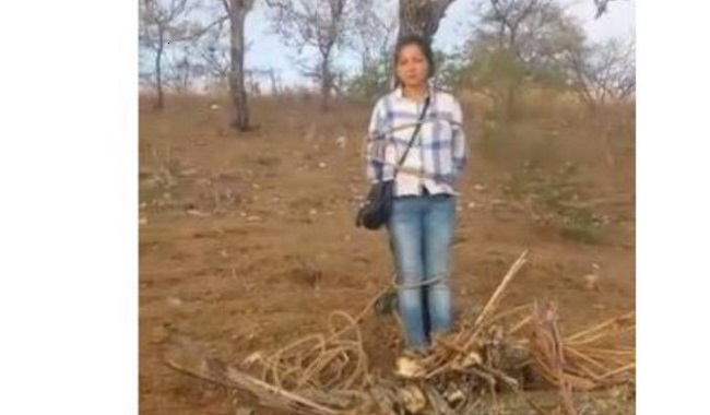 En la grabación aparece Nayeli Joana Flores Sánchez atada a un árbol y con leña a sus pies, mientras un hombre que no aparece a cuadro expresa: “A ver cuánto valoran sus familias. Ya le van echar fuego acá a la leña en sus pies”.