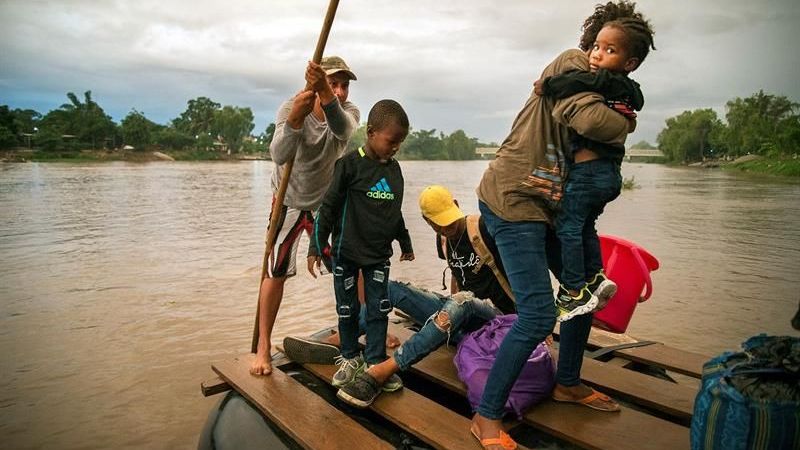 Una caravana de casi un millar de migrantes de Honduras y El Salvador ingresaron esta maña de forma irregular a territorio mexicano, sin que ninguna autoridad lo impidiera.