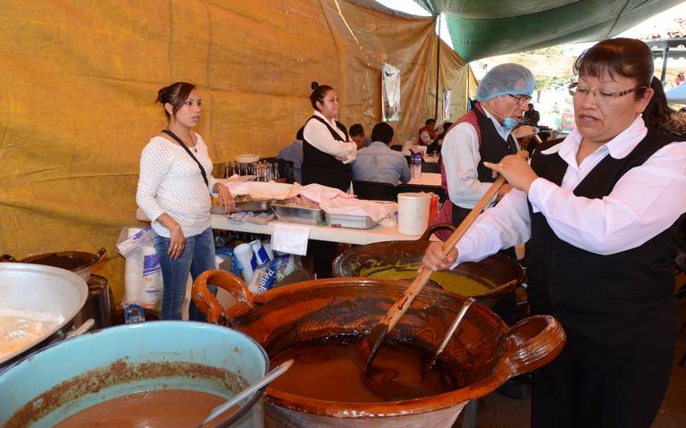 Entre las exposiciones de los artesanos de este platillo típico, invitaron a degustarlo con carne de pollo, cerdo, conejo, pavo o bien las enmoladas, tostadas y tacos que van de los 60 a los 90 pesos, sazonado en cazuela de barro que le da un sabor inigualable para los paladares exigentes.