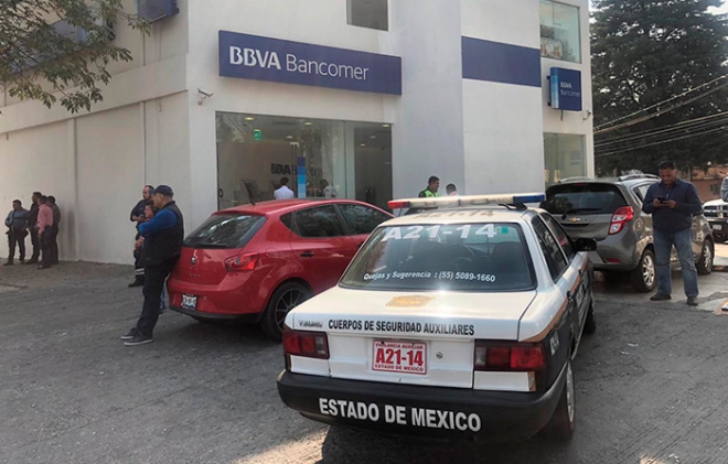 Al filo de las 11:00 horas de este viernes un sujeto asaltó la sucursal bancaria de BBVA, ubicada en las calles Convento de Actopan y Convento de Santa Mónica de la colonia Jardines de Santa Mónica en Tlalnepantla, Edomex.
