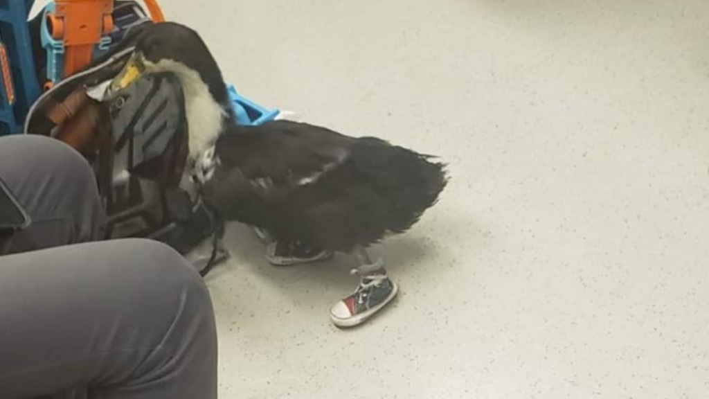 Una mujer relató que preguntó a la madre del niño, quien llevaba al pato, por qué el animal, nombrado Bruna, utilizaba zapatos.