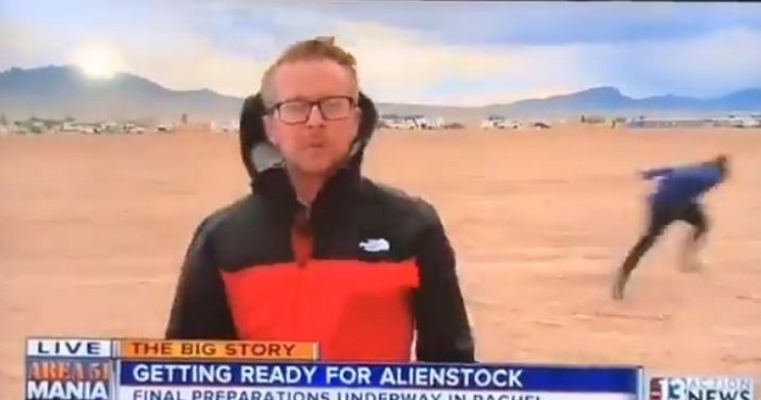 Es el día. Ha llegado el "asalto al Área 51". Un periodista que se encuentra en los alrededores, ha grabado a esta persona corriendo al estilo de Naruto