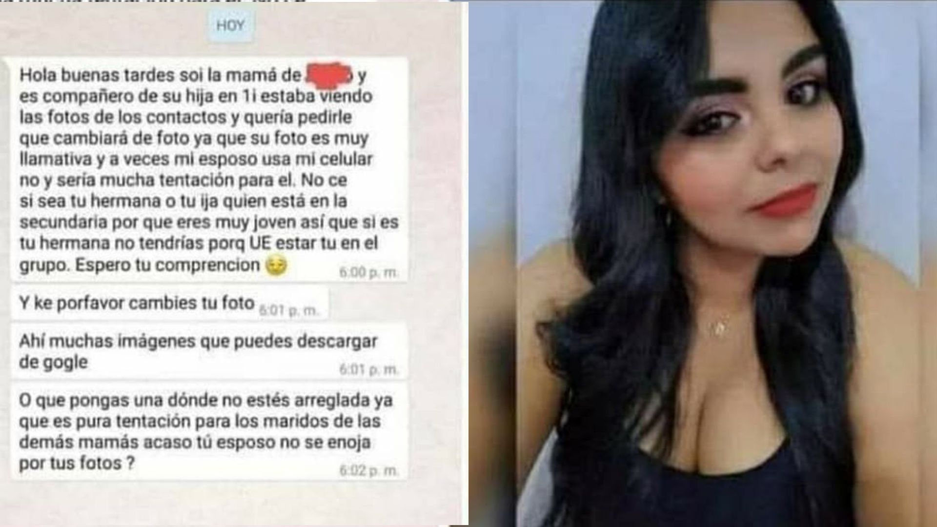 ‘Hola, buenas tardes. Soy la mamá de (…) y es compañero de su hija en 1 i, estaba viendo las fotos de los contactos y quería pedirle que cambiara de foto ya que su foto si muy llamativa y a veces mi esposo usa mi celular y sería mucha tentación para él.