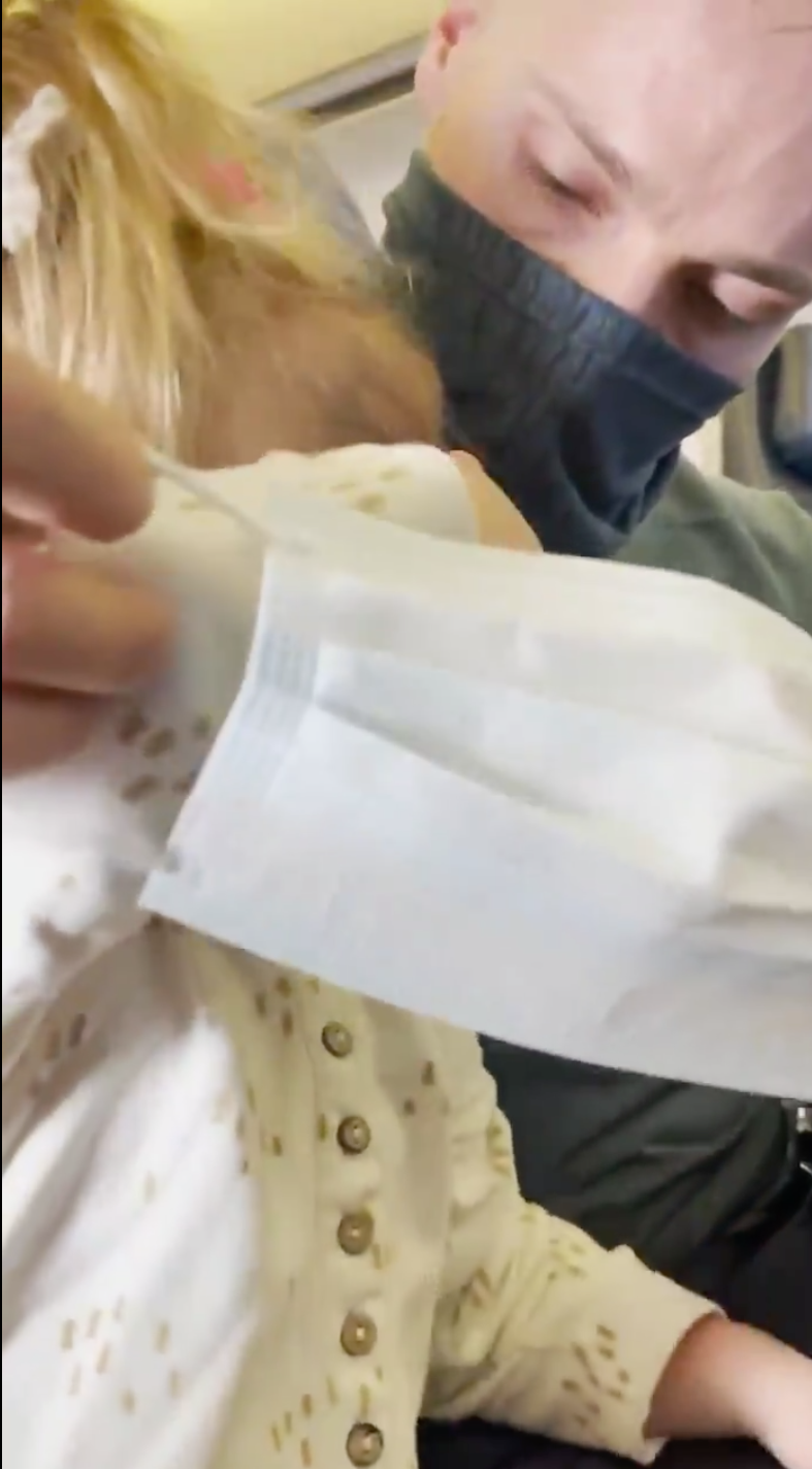 Ante esto, se hizo viral en redes sociales un video donde una madre de una niña de 2 años de edad denuncia el que su familia fue desalojada de un vuelo de United Airlines debido a que la pequeña no quizo ponerse el cubrebocas.