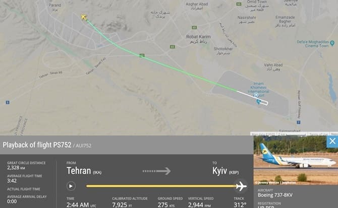 El vuelo 752 de Ukraine International Airlines se estrelló a pocos minutos de despegar del Aeropuerto Internacional Imán Jomeini en Teherán. Las 176 personas a bordo murieron, entre ellos 82 iraníes, 63 canadienses y 11 ucranianos.