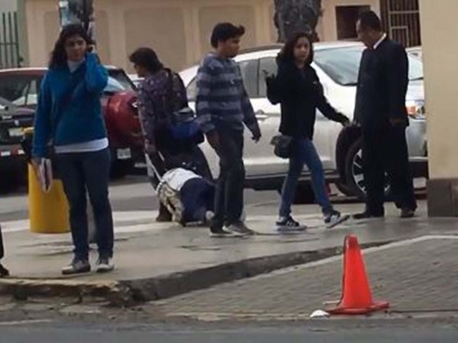 En Perú una mujer fue captada arrastrando a su hijo montado sobre su mochila de rueditas para llevarlo a la escuela.