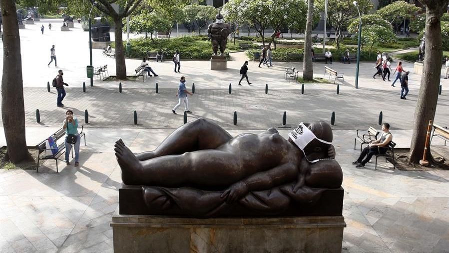 Este proyecto, que involucra 150 intervenciones pedagógicas con más de 280 artistas, comenzó cubriendo con grandes mascarillas las esculturas del pintor y escultor colombiano Fernando Botero ubicadas en el centro de la ciudad para sensibilizar a la población.