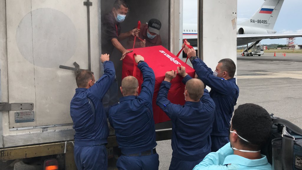 “Estamos recibiendo el primer lote de vacunas para la fase 3 del ensayo clínico contra el COVID19, proveniente de la Federación de Rusia. El Gobierno Bolivariano apunta a solidaridad como eje fundamental de la geopolítica mundial”, informó la vicepresidenta.