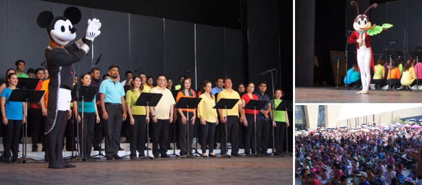 Más de mil personas disfrutaron, de forma gratuita, de una tarde en el Teatro al Aire Libre, con las voces del coro dirigido por el Mtro. Manuel Flores y un espectáculo que incluyó marionetas, más de 20 bailarines y música en vivo.