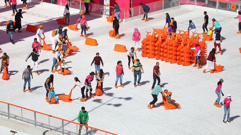 Incluirá un tobogán de 9.90 metros de altura, 37 metros de caída congelada y 23 metros lineados de frenado. Las autoridades prestarán dos mil 350 pares de patines; mil 250 cascos, 300 focas entrenadoras de plástico y 120 donas deslizadoras.