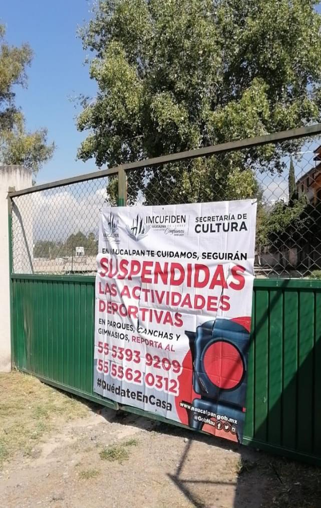 El Instituto Municipal de Cultura Física y Deporte de Naucalpan (Imcufiden) colocó carteles informativos a las afueras de 10 unidades deportivas, parques y canchas de fútbol rápido, a fin de indicar que continuarán cerrados hasta nuevo aviso, de acuerdo con el Semáforo Sanitario del Gobierno del Estado, el cual permanece en rojo.