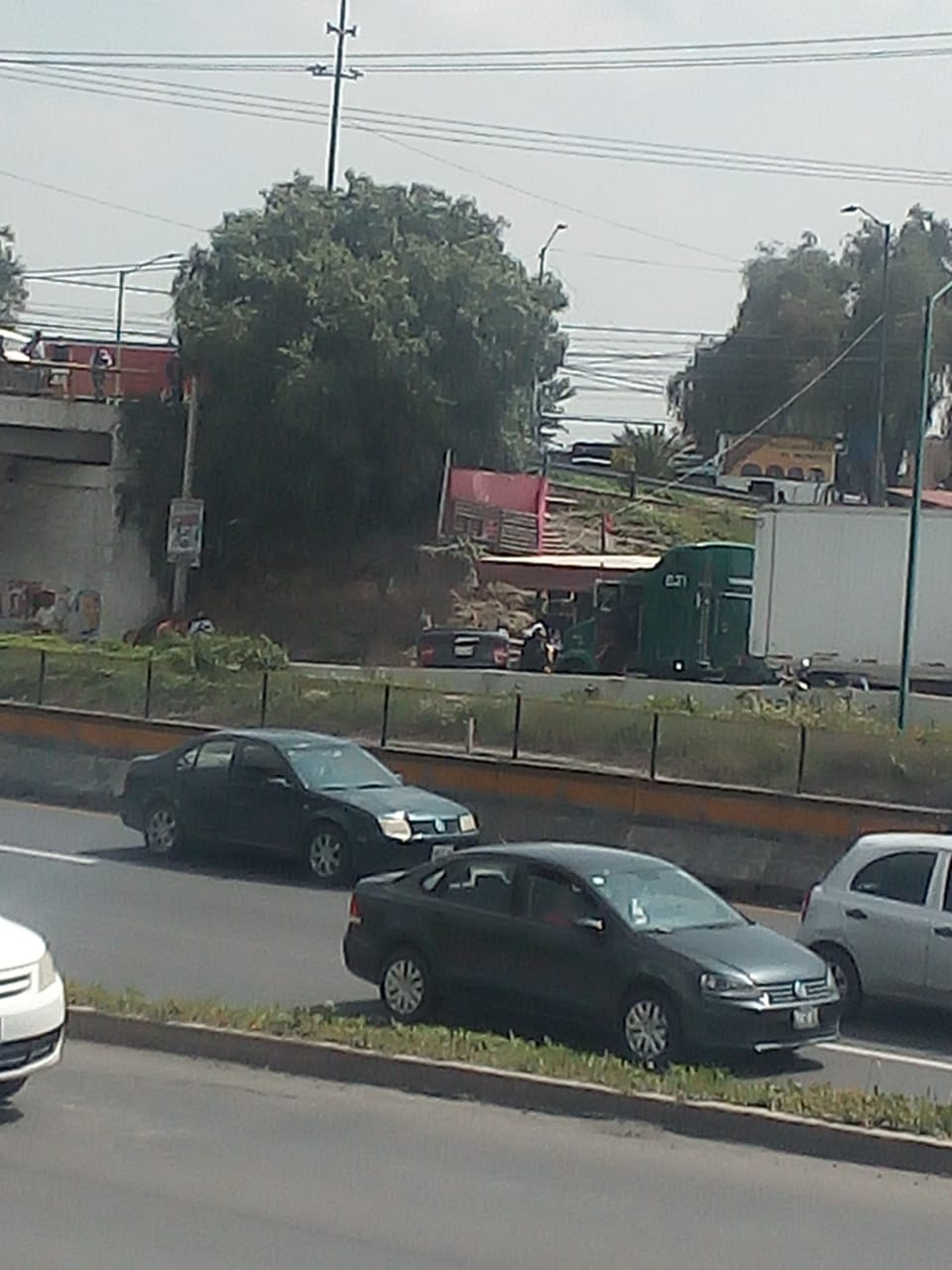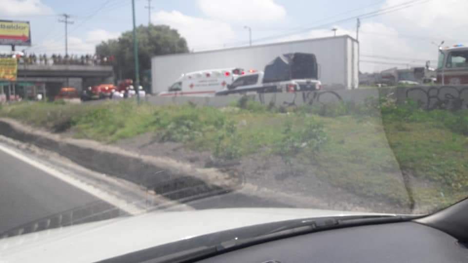 #Izcalli ? Automóvil se voltea después de chocar contra un tráiler en carriles laterales de la autopista México-Querétaro, a la altura de Plaza San Marcos en dirección norte.