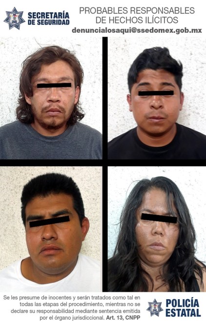 Después de dar seguimiento a las imágenes captadas en cámaras de vigilancia, se establecieron despliegues operativos estratégicos que ayudaron a la detención de quienes dijeron llamarse Jorge Alberto “N” de 22 años; Laura Victoria “N” de 35 años; Alfredo Gustavo “N” de 31 años y Cristian de Jesús “N” de 33 años, estos dos últimos choferes del transporte público.