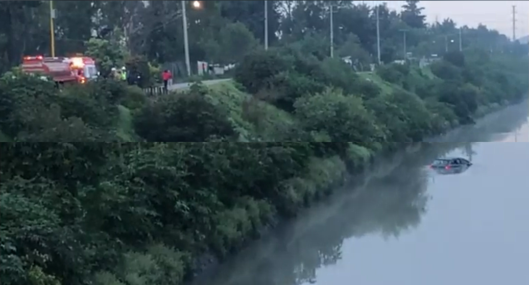Amanece vehículo compacto flotando en el canal de aguas negras que pasa por detrás del pueblo de San Lorenzo Río Tenco en Cuautitlán Izcalli.