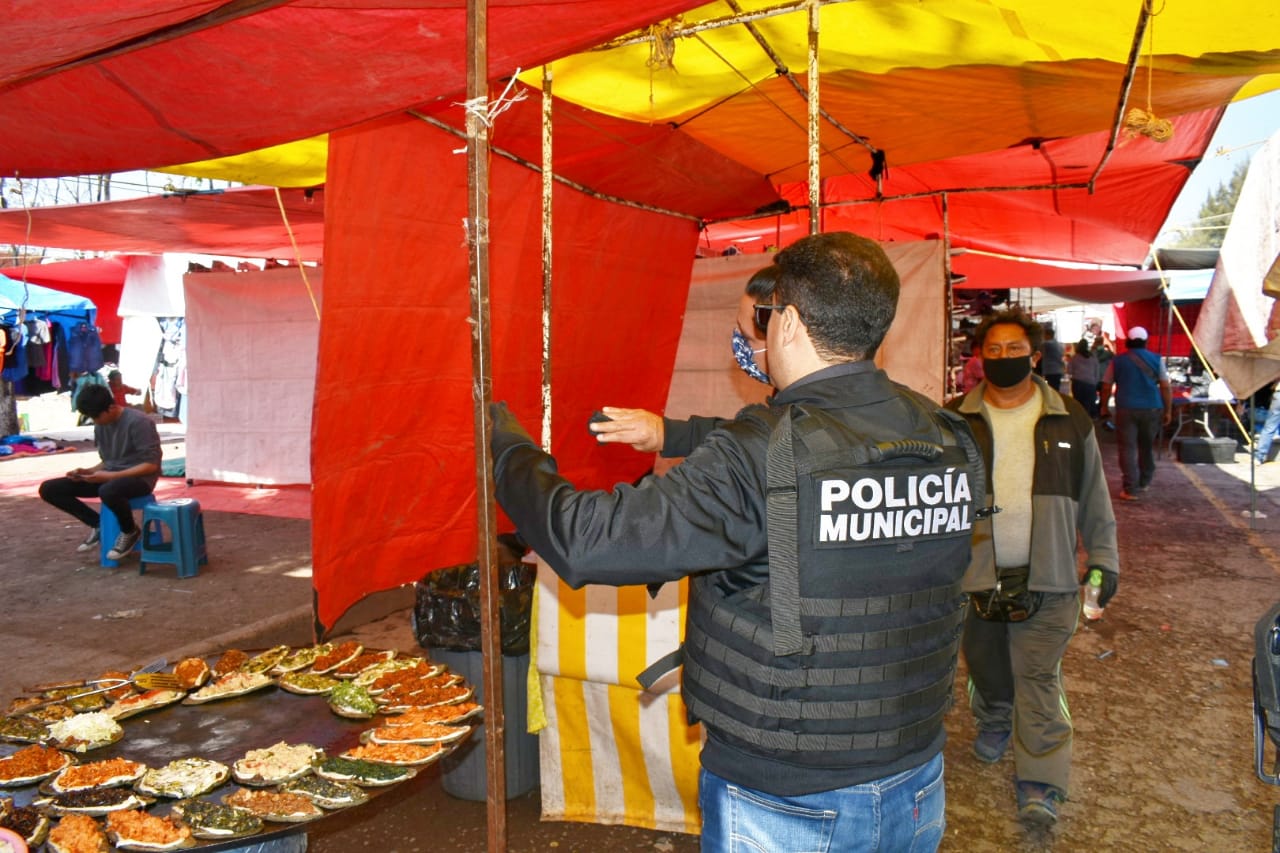 El operativo a cargo de la Dirección General de Desarrollo Económico, en coordinación con la Comisaría de Seguridad Pública recorrieron cada uno de los puestos para verificar que cuenten con gel antibacterial, mientras que en los que vendan alimentos se procure que sean para llevar y en el área mantener distancia entre las mesas y comensales, así como el uso de cubrebocas.