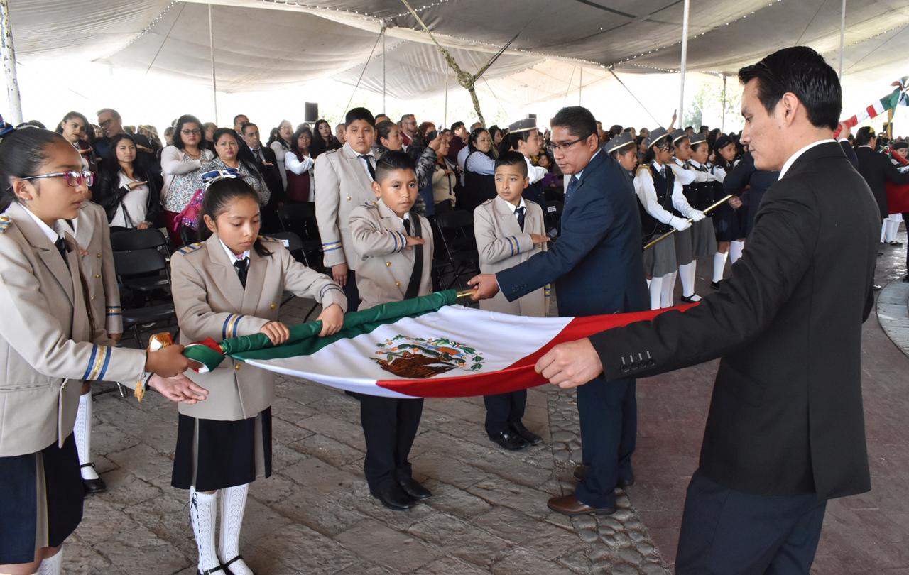 Cabe destacar que como parte de la ceremonia, ediles y directores llevaron a cabo el abanderamiento a escoltas de las escuelas del municipio, entre ellos los jardines de niños Ollin Yolilztli, Itzamná, Teyolizcalli, Rosaura Zapata y Quetzalli; las primarias Mario Colín, Amalia S. D Cárdenas, Niños Héroes, Lázaro Cárdenas, Gustavo Baz, Carmen Serdán, José Vasconcelos, Sor Juana Inés de la Cruz, Ignacio Zaragoza, Felipe Ángeles, Felipe Carrillo Puerto y Cuauhtémoc; las secundarias Charlotte Yazbeck, Manuel Gutiérrez Nájera, Netzahualcóyotl, las Telesecundarias Melchor Muzquiz y Tepochcalli; así como el Telebachillerato Comunitario 330.