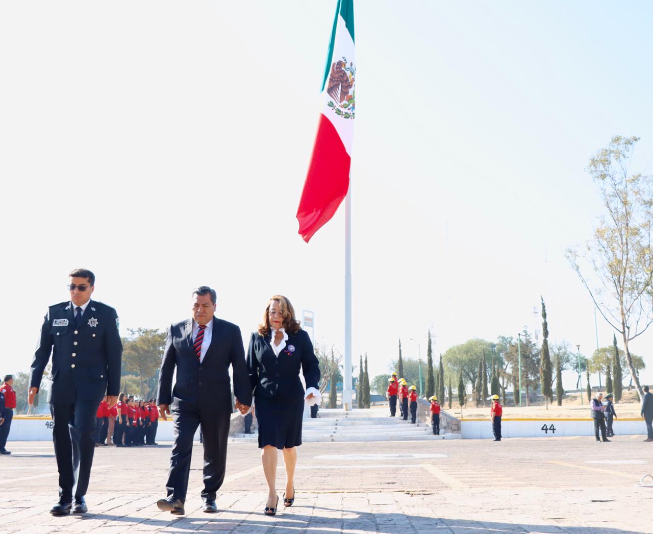 En ceremonia solemne, el presidente municipal, Ricardo Núñez Ayala, en compañía de la presidenta del Sistema Municipal para el Desarrollo Integral de la Familia (DIF) Izcalli, Micaela Alvarado Jiménez, regidores y directores, conmemoraron el Día de la Bandera en la Explanada Municipal, donde también fueron abanderadas escoltas de distintas escuelas de la demarcación.