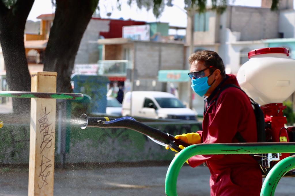 CONTINÚA SANITIZACIÓN DE ESPACIOS PÚBLICOS EN IZCALLI