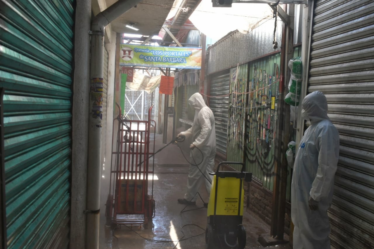 Durante un operativo realizado por la Dirección de Desarrollo Económico se acordó con los comerciantes que se procedería a realizar estos trabajos y solicitó que los puestos estuvieran cerrados y fueran abiertos nuevamente una hora después de concluida la desinfección.