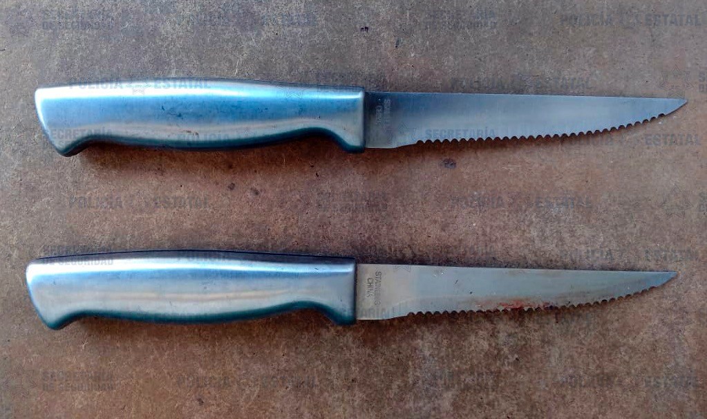 Los oficiales que acudieron a dicho llamado, al entrar al domicilio, descubrieron al hoy occiso tendido en las escaleras a causa de las heridas recibidas; y al ser alertados de que el agresor se daba a la fuga, fueron tras él, le dieron alcance y al catearlo le encontraron 2 cuchillos en su poder, mismos que presuntamente son los que habría utilizado en la pelea.