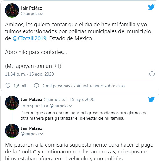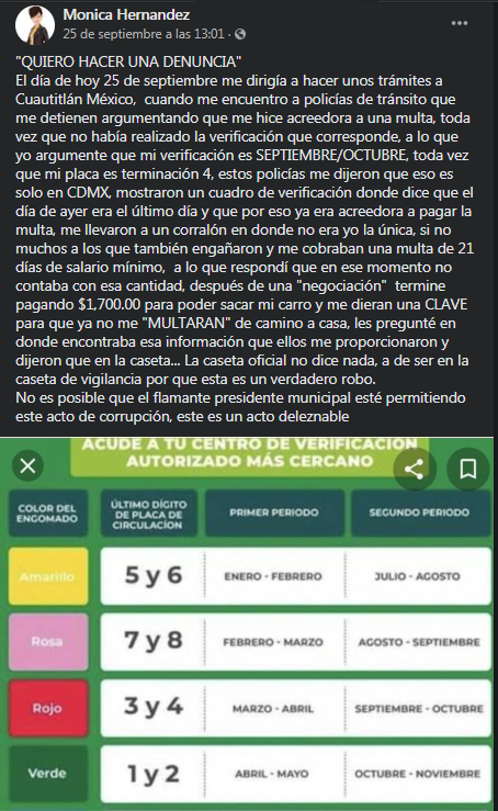 ¡Pareciera burla! Ya que a diario las redes sociales están llenas de denuncias en contra de estos corruptos, por ejemplo, una que se hizo viral: la de @jairpelaez acusó que policías municipales de Cuautitlán Izcalli, lo amenazaron y exigieron 10 mil pesos por haber infringido el Hoy No Circula, Y muchas más con pretexto del regreso de la verificación vehicular, etcétera.