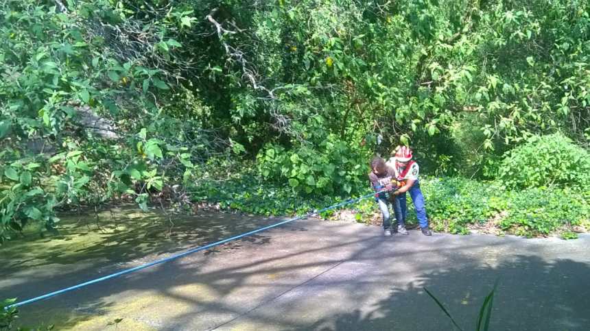 En el lugar se presentan elementos de la policía y personal de protección civil quienes de inmediato intervienen para sacar al joven.
