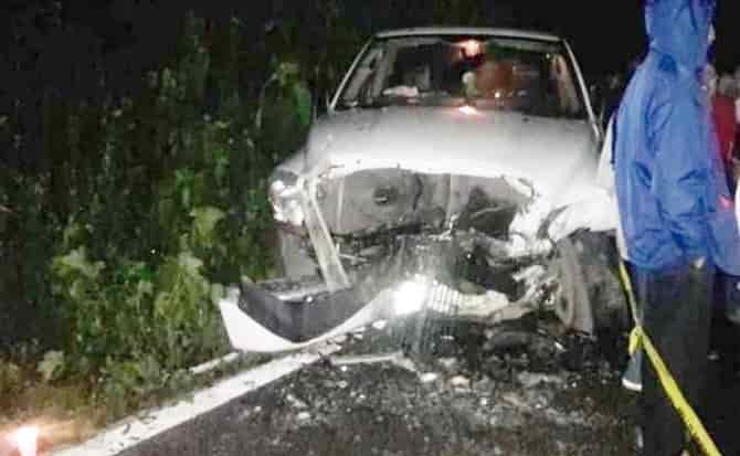 Ahí quedó una unidad Nissan Tsuru, color azul, con placas de circulación de la entidad, que terminó siniestrada de la parte delantera así como una camioneta Dodge Ram que estaba a un costado de la vía tras el impacto ocurrido durante la noche del lunes, indicaron fuentes locales.