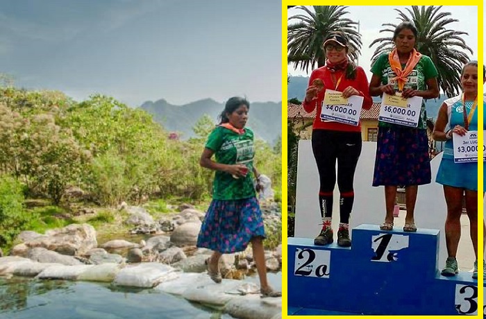 No llevaba ni ropa ni zapatos deportivos, sino una falda y un par de huaraches. Corrió durante siete horas y tres minutos.