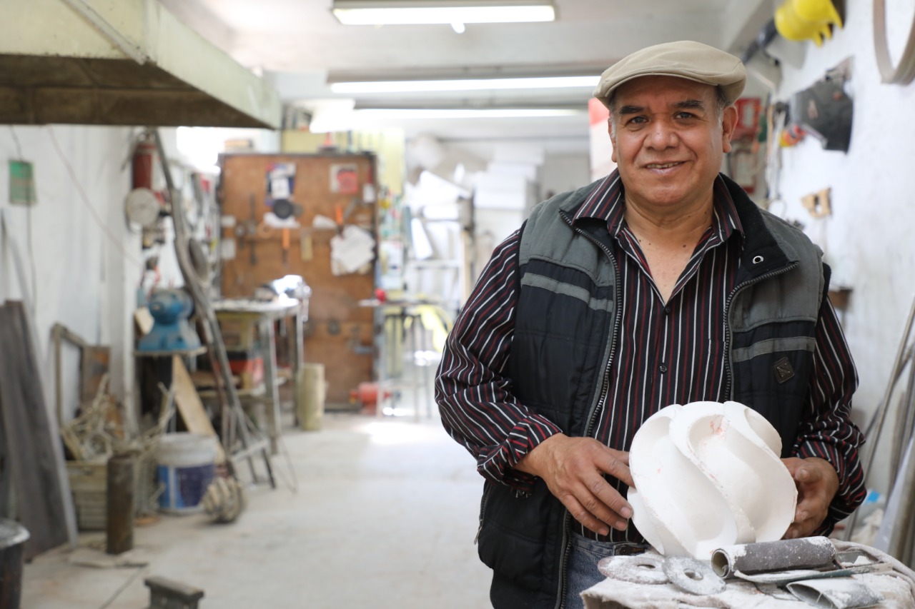 Su taller, en San Rafael Chamapa, en el Municipio de Naucalpan, es el principio de todas sus creaciones. Este espacio de trabajo no solo es el origen de sus obras, también representa la realización de un sueño que tenía desde su adolescencia, cuando el dinero era escaso.