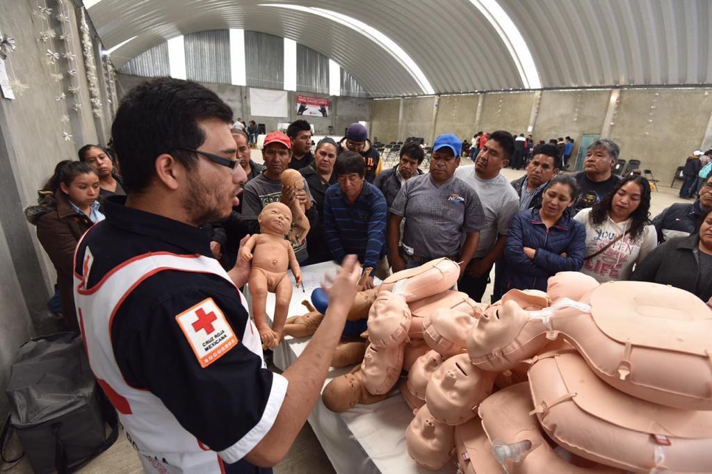 Este programa de capacitación inició con un curso de Primeros Auxilios a cargo de personal de la Coordinación Estatal de Capacitación de Cruz Roja Mexicana, en el que participaron 240 personas, primero en una sesión teórica dirigida a todos los participantes, y luego se realizaron seis estaciones prácticas donde se enseñó sobre cómo atender lesiones de distintos tipos, colocación de férulas, atención de hemorragias y quemaduras, fracturas, Soporte Vital, maniobras de Reanimación Cardiopulmonar (RCP) y traslado de lesionados.