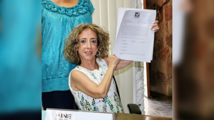 María Elena Saldaña, conocida como “La Güereja”, se registró como candidata a diputada federal por el partido Nueva Alianza.